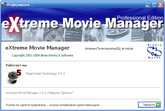 Скачать программу eXtreme Movie Manager 7.0.2.4 Deluxe Edition (30,8 МБ):