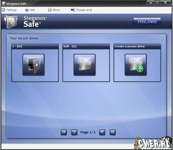 Эта программа позволяет создать на компьютере виртуальный шифрованный диск для хранения жизненно важных файлов и документов, которые нужно оградить от доступа посторонних. Виртуальный диск записывает все данные в файл с расширением *.sde, подвергнутый шифрованию и заблокированный паролем. В нем можно хранить любой вид информации, ограниченный объемом диска. Steganos Safe содержит модуль для генерирования сложных паролей, средства для защиты почтовых программ Outlook, Outlook Express и Windows Mail.