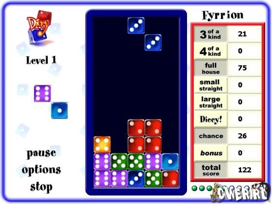 Новый подход к классической идее Color Tetris-a. Здесь вместо классических цветных блоков используются игральные кости, из-за чего возникают новые комбинации и правила игры.