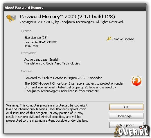 Скачать Password Memory 2009 2.1.1.128 (12,6 МБ):
