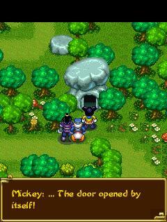 Простые фермеры Микки, Дональд и Гуффи жили в маленькой деревушке и выращивали цыплят. Однажды утром они обнаружили, что несколько цыплят пропало. Отправившись на их поиски, они нашли пещеру, которую никогда не видели раньше. Из любопытства они зашли туда и обнаружили сундук. В нем было письмо. После того, как они прочитали его, "Божество Земли" вышло и рассказало Микки их судьбы. Они должны пойти на Запад за "Священными писаниями". Таким образом, эта троица начала свое приключение. Размеры экранов: 128x128, 128x160, 208x208, 240x320.