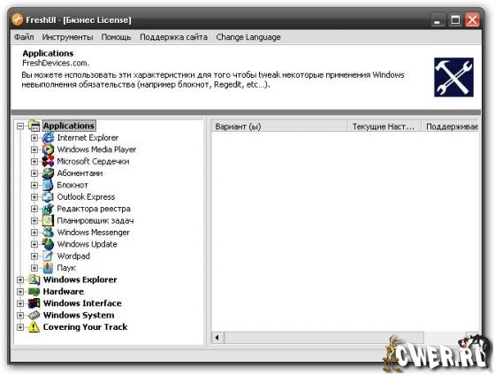 FreshUI - утилита, при помощи которой вы получите доступ к большому числу параметров операционных систем Windows, разбитым на несколько категорий — интерфейс, система, аппаратная часть, приложения (Windows) и пользователи (среда и правила).