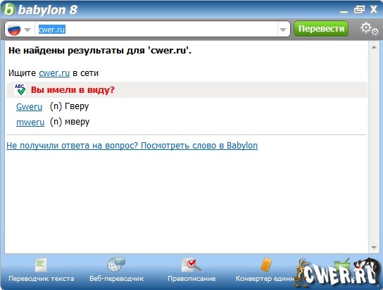 Babylon 8 - словарь, позволяющий переводить слова с одного языка на другой. Работать со словарем очень просто - после нажатия кнопкой мыши на интересующее слово появляется окно с его переводом. Кроме перевода слов, программа включает в себя английские тематические и толковые словари, а также имеет функции конвертации валют на текущую дату и перевода мер из одной системы в другую. Кроме словаря, который можно использовать в любое время, при онлайн-работе, Babylon позволяет воспользоваться огромными базами данных, сосредоточенными в таких глоссариях, как Britannica, Amazon, Accuweather и другие. Теперь вам не потребуется много времени на исправление орфографических ошибок и на поиск правильного слова или перевода. С данной программой читать и писать на всех языках гораздо проще, быстрее и эффективнее. Программа делает всю работу за вас, при помощи проверки орфографических ошибок в реальном времени, умного переводчика на любой язык и с любого языка, а также автоматического подбора выражений.