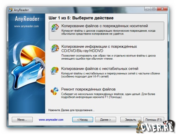 Часто необходимо считать данные с поврежденных "флешэк", дискет, поцарапанных DVD/CD-дисков, ненадежных сетей LAN (Wi-Fi). Обычными средствами это будет сделать, скорее всего, невозможно. Для таких случаев и существует программа AnyReader, которая выручит вас в подобной ситуации и легко прочитает, казалось бы, уже потерянную ценную информацию с любых носителей, которые доступны как буква диска в операционной системе Windows. Продолжение чтения (копирования) данных после возникающих ошибок или потери соединения в сети является уникальной возможностью программы AnyReader.