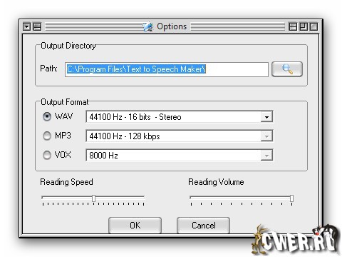 Text to Speech Maker - это одна из лучших программ для преобразования текста в речь, позволит вам прослушивать документы, почту или web страницы вместо их чтения на мониторе. Позволяет превращать текст в WAV, MP3 или VOX файлы для прослушивания на вашем компактном MP3 плеере.