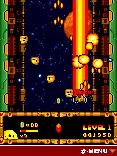 Вас ждет яркая, зрелищная и забавная аркадная космическая стрелялка! Прорвитесь через все уровни, ураганным огнем расчищая путь своему космическому кораблю от уморительных врагов. Впечатляющие спецэффекты, потрясающий звук и многочисленные забавные противники – всего этого в игре полно! Сможете победить их всех? Размеры экранов: 128x128, 128x160, 176x208, 240x320.