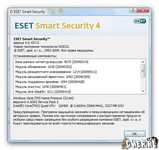 Скачать ESET Smart Security 4.0.437 Final Rus (34/39 МБ):