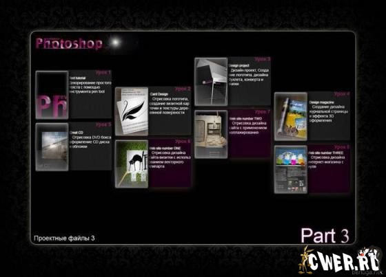Данный диск содержит третий этап (web дизайн) - узнайте все мельчайшие подробности отрисовки успешных баннеров и логотипов, визитных карточек, DVD дисков, книжных обложек и создание дизайна как мини-сайтов, так и крупных Интернет-магазинов.