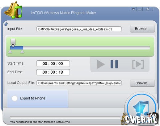 Скачать программу ImTOO Windows Mobile Ringtone Maker 1.0.12 Build 0605 (14,48 МБ):