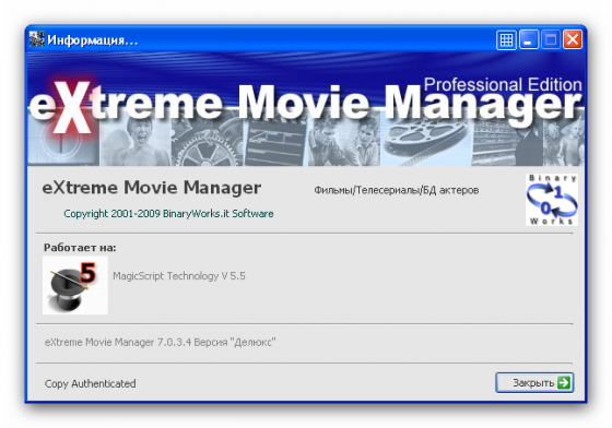 Скачать программу eXtreme Movie Manager 7.0.3.4 Deluxe (25,36 МБ):