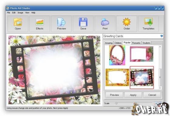 Photo Frame Studio - новая потрясающая программа от польского разработчика MojoSoft, созданная для редактирования и декорации цифровых фотографий. Программа предлагает вам воспользоваться сотней шаблонов рамок для украшения, каждая их которых может быть изменена по вашим индивидуальным требованиям, включая фоновые цвета и изображения. Интерфейс программы был создан с уклоном на то, чтобы каждый пользователь смог без проблем воспользоваться этой программой. Вы сможете украсить ваши изображения с помощью добавления к ним разнообразных рамок, масок, фонов, теней или текста. Кроме того, вы сможете создать вашу собственную композицию шаблона для дальнейшего использования. Также данная программа позволяет вам производить калибровку изображений, включая обрезку и увеличение изображений, а также удаление эффекта красных глаз.