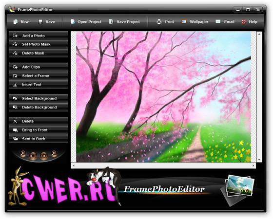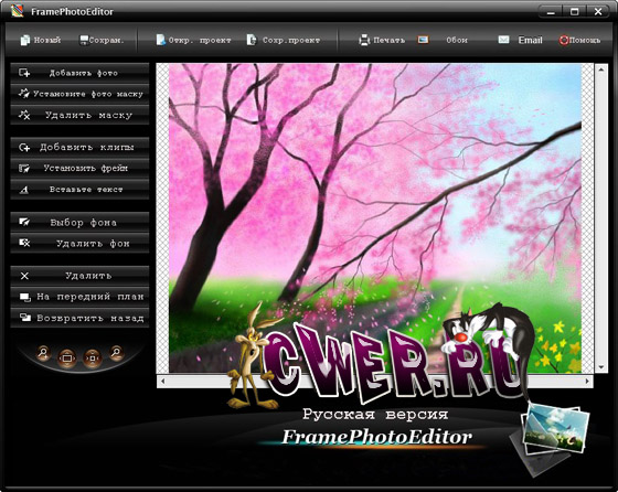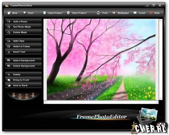 С помощью Frame Photo Editor вы сможете "вдохнуть в ваши фотографии новую жизнь ", то есть придать гармоничный и законченный вид . Используя незамысловатые инструменты, легко можно добавить текст, наложить поверх другие изображения, повернуть под углом фотографию, изменить размер. Кроме этого, фотография непременно преобразится, если подобрать к ней удачную рамку, или подставить фоновый задний план. Можно также использовать разнообразные Photo Mask, придающие изображению оригинальные очертания, можно добавлять элементы мультипликации (CLIP) и т. д . Результат вашей творческой работы можно не только просто сохранить, а тут же отправить по почте друзьям, распечатать на принтере, или установить в виде обоев.