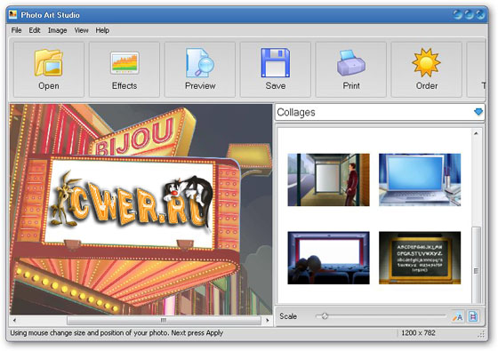 AMS Software Photo Collage Maker - удобная программа для создания оригинальных композиций, состоящих из фона и нескольких фотографий. Создать красивый коллаж в программе можно быстро и просто: достаточно выбрать фоновое изображение из каталога, добавить пару-тройку собственных фотографий и поэкспериментировать с различными эффектами.
