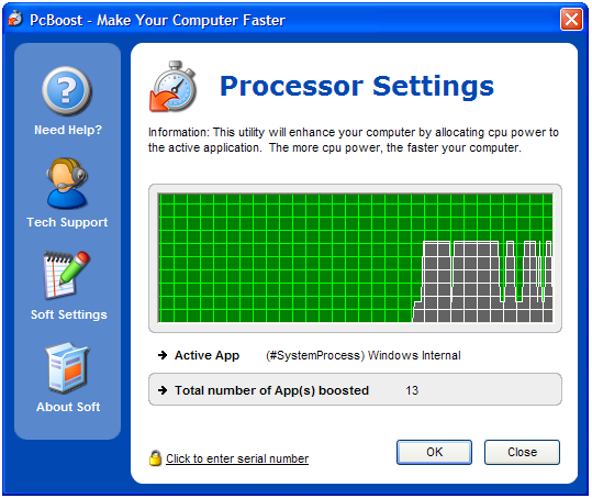 PcBoost - программа увеличивающая быстродействие компьютера за счет выставления программ приоритетов. PcBoost автоматически выставляет приоритеты для запущенных программ, что позволяет с максимальной эффективностью использовать мощность вашего процессора.