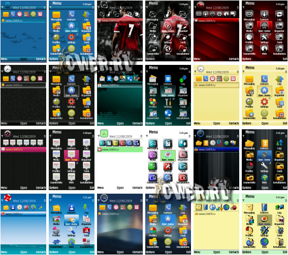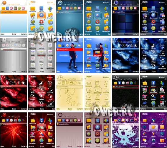 Темы для смартфонов Nokia под управлением Symbian OS 9.х: Nokia 3250, 5500 Sport, 5700, 6110 Navigator, 6120 c, 6121, 6220 classic, 6290, E50, E51, E60, E61, E61i, E62, E65, E70, E90, N71, N73, N75, N76, N77, N78, N79, N80, N81, N81 8GB, N82, N91, N92, N93, N93i, N95, N95 8GB и др. cwer.ws