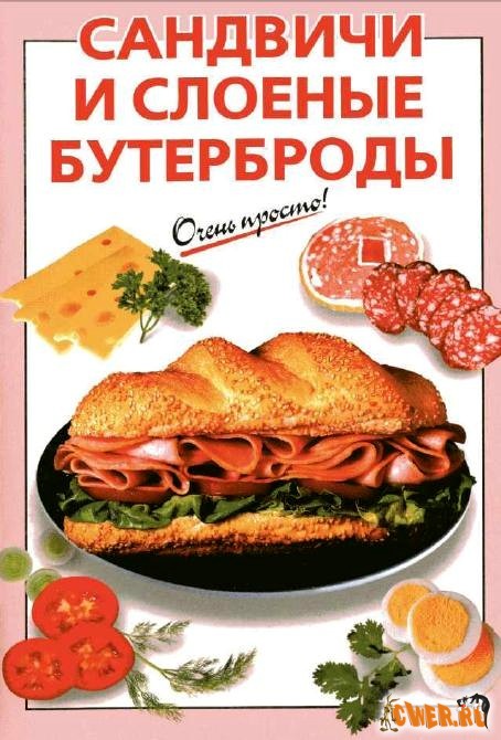 Вариантов бутербродов — великое множество. Они могут быть открытыми и слоеными, толстыми и тонкими, самой разнообразной формы. Можно сделать даже торты-бутерброды. Но все они будут красивы и вкусны, если хлеб нарезан тонко и аккуратно, начинки сочные и хорошо сочетаются по вкусу и цвету. Нужно только проявить фантазию — а в этом вам поможет наша книга.