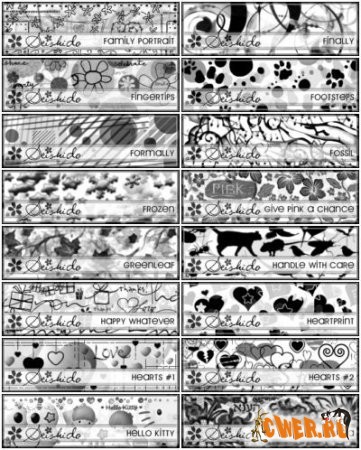 Набор кистей для Photoshop. Сборка от Seishido. В архиве 23 файла кисточек, к каждому прилагается jpg.