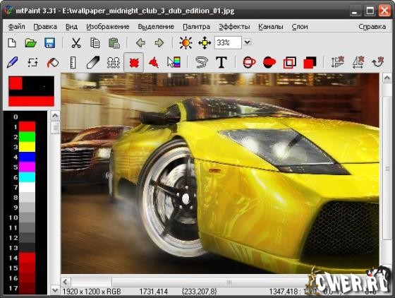 Небольшой, но функциональный графический редактор. mtPaint не требователен к ресурсам компьютера, но обладает всеми основными функциями, присущими подобным программам. Присутствуют все стандартные инструменты графических редакторов: кисть, карандаш, заливка, геометрические фигуры, удобное средство для клонирования изображений и т.д. Кроме того, программа позволяет работать со слоями, цветовыми каналами и менять прозрачность кисти. Также тут имеется несколько простых фильтров, применяемых к изображениям (изменение цветовой гаммы, размытие, увеличение резкости и изометрическая трансформа). Сохранить рисунок можно в графические форматы: JPG, PNG, TIFF и BMP.