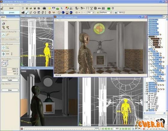 CyberMotion 3D-Desinger – хороший 3D редактор, состоящий из нескольких модулей, с помощью которых можно создавать 3D анимацию и прочие сцены.