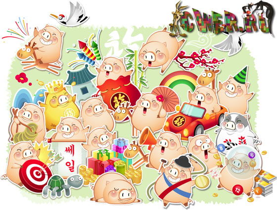 Векторный клипарт со свинками. Формат AI + JPG-превью