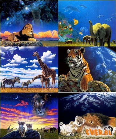Подборка рисованных в 3D обоин с различными животными.