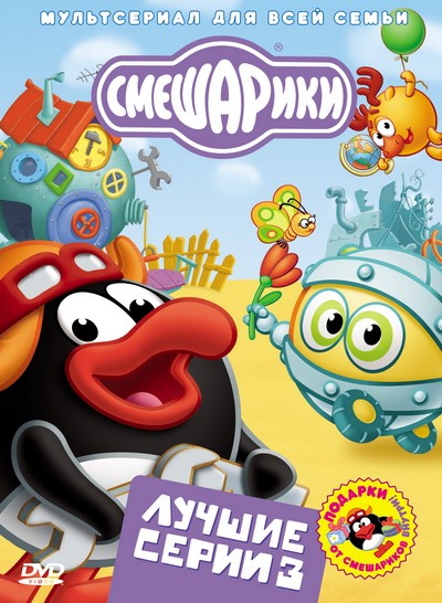 Российский мультипликационный сериал. Смешарики ориентированы на аудиторию любой возрастной группы, в них большое внимание уделено юмору. Мультсериал создан в рамках проекта "Мир без насилия" и производится при поддержке Министерства культуры. Главные герои - круглые зверушки, каждый обладает своим индивидуальным характером, что позволяет детям изучать их. Сюжеты построены на различных ситуациях, воспроизводящих реальные проблемы, с которыми может столкнуться ребёнок в жизни. По мнению авторов, шарообразность персонажей подчёркивают их доброту и позволяет легко их нарисовать даже ребёнку.
