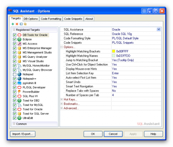 SQL Assistant – инструментарий для разработчиков и администраторов баз данных. Может использоваться при работе над проектами любой степени сложности, от небольших баз данных до комплексных корпоративных систем. Программное обеспечение оказывается готовым к эксплуатации немедленно после установки и не предполагает приостановки текущих рабочих процессов. Инструментарий повышает продуктивность труда SQL-разработчиков и гарантирует высокое качество кода. В том числе в состав пакета входят превосходные инструменты для проверки правильности SQL-синтаксиса, механизмы автозавершения синтаксических конструкций, средства быстрой навигации по программному коду и многое другое. В распоряжении пользователей также окажется интегрированный блок проверки правописания. Среди других достоинств продукта стоит упомянуть поддержку наиболее распространенных СУБД.