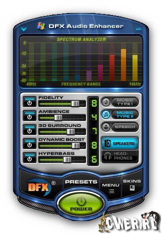 DFX Audio Enhancer - плагин для улучшения качества звучания плееров Winamp, Windows Media Player, MusicMatch JukeBox, Musicmatch, RealPlayer, J. River Media Center, Yahoo! Music Jukebox. C помощью DFX устраняются два главных недостатка - срез высоких частот и недостаточное разделение стереобазы и ее глубины. Есть хорошая подборка заранее заготовленных настроек, то есть пресетов. Проще его можно назвать как модный расширенный эквалайзер, с настройками, которых нет в плеерах.