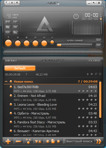 AIMP - программа, которая разрабатывалась как аналог всем известного медиаплеера Winamp. На данный момент программа включает в себя множество дополнительных модулей: CD-Ripper, Tag Editor, Audio-player, аудио конвертер, запись аудио и дисков с данными и многое другое. AIMP заменяет множество программ, благодаря чему теперь не нужно искать специальный софт, скажем, для перегона Audio-CD в MP3 - это уже предусмотрено в AIMP. Программа позволяет воспроизводить без плагинов множество форматов, включая WAV, MP3, MP2, MP1, OGG, WMA, UMX и многие другие. Интерфейс программы выглядит очень стильно, а также имеет многоязычную поддержку, включая русский язык.