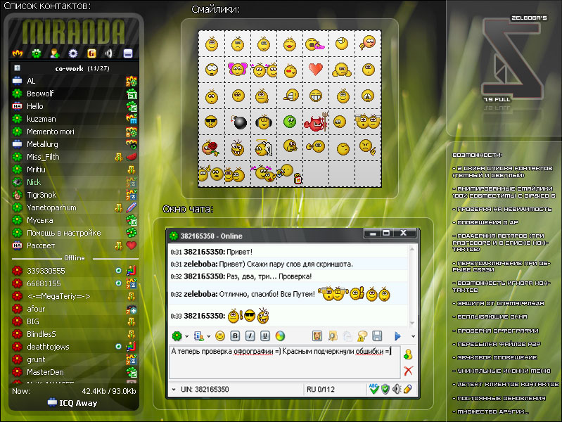Рад представить вашему вниманию долгожданное обновление сборки Miranda IM zeleboba's pack! В новой версии обновилось множество плагинов, отловились некоторые старые баги, добавились некоторые новые возможности, произошли некоторые косметические изменения в интерфейсе, несколько уменьшился вес сборки, улучшился детект невидимок.