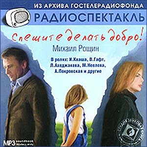 В основу пьесы «Спешите делать добро» Михаила Рощина положена необычная ситуация. Глава семьи Мякишевых, возвратившись из командировки, привозит с собой девочку-подростка, которую спас от самоубийства. Так в размеренный быт столичной семьи вторгается недетская драма Оли Соленцевой, которая становится для окружающих нравственным испытанием. Драматург показывает, как порой важно не только сделать, но и отстоять добро. Спектакль театра «Современник»