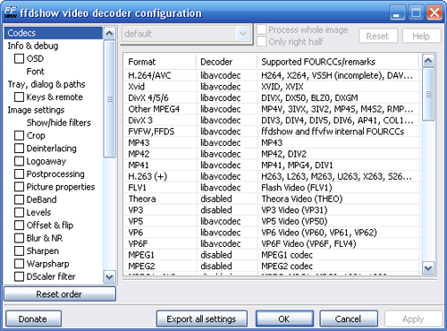 K-Lite Codec Pack - универсальный сборник, который пригодится всем, кто смотрит фильмы в форматах DivX/XviD. Версия (Standard) включает в себя все кодеки, которые могут понадобиться для проигрывания большинства видеофайлов, а также проигрыватель Media Player Classic (BSPlayer не входит в состав последних версий K-Lite Codec Pack). Полная версия (Full) содержит несколько дополнительных кодеков, которые встречаются менее часто, в том числе декодеры MPEG-2, DVD и Indeo, а также все для кодирования видео и аудио.