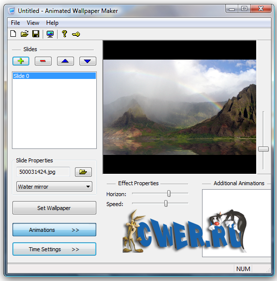 Вдохните новую жизнь в свой рабочий стол! Animated Wallpaper Maker поможет вам превратить статичные фотографии в анимированные картинки и установить их в качестве обоев для вашего рабочего стола. Вы сможете анимировать абсолютно любую фотографию. Вам не понадобятся дорогие, сложные программы! Вы сможете сами создать анимированные обои всего за пару минут. Загрузите фотографию, настройте параметры анимации и размещайте результат на рабочем столе!