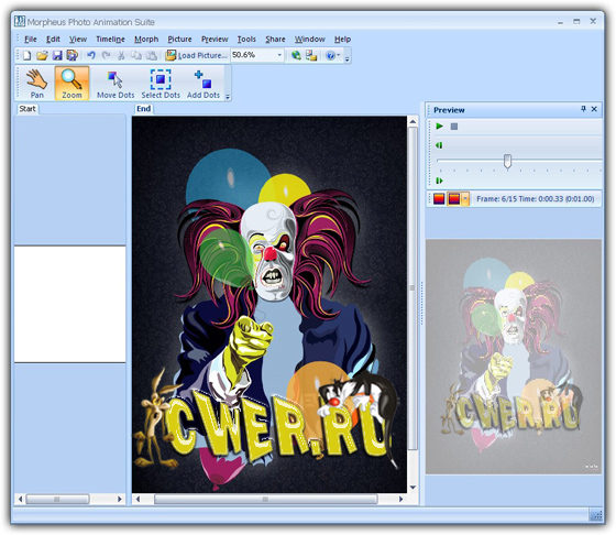 Morpheus Photo Animation Suite - мощный программный пакет, сочетающий в себе все возможности создания морфинга, создающего плавный переход из одного объекта фотографии в другой.