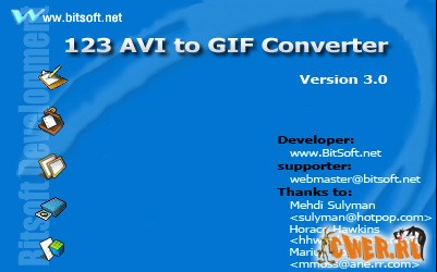 123 AVI to GIF converter - конвертер от MiniHttp Inc., компании, которая специализируется на создании анимационных GIF. Это профессиональный видеоконвертер, который превращает файлы AVI, DivX, XviD, MS MPEG4, Uncompressed, Cinepak и др.), файлы MPEG-1, MPEG-2, WMV или QuickTime в анимационные GIF-ы. Имея простой и удобный интерфейс для пользователя, приложение позволяет помимо конвертации изменить размер кадра, частоту кадров, яркость и сформировать соответствующий анимационных GIF на выходе.