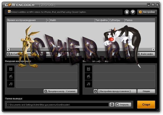 GOM Encoder - великолепный видео-конвертер из Кореи, новый продукт от производителей известного GOM Player, прославившегося у части мировой публики своим качеством. По заявлению разработчиков конвертирует всё, что может проиграть GOM Player, причем кодирование очень стабильное и заточено на высокую скорость и совместимость с многоядерными процессорами.