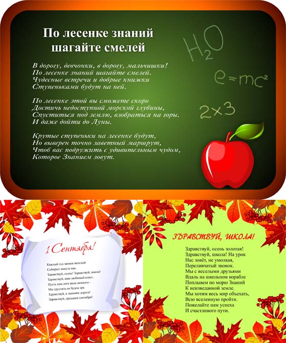 Яркие и красочные макеты шаблонов к празднику знаний. 7 шаблонов со стихотворениями к 1 сентября (текст конвертирован в кривые). 2 файла с чистыми шаблонами. 1 файл в формате CDR со стихотворениями (текст не конвертирован в кривые). Каждый для себя найдет то, что ему нужно. Вам понадобится немножко фантазии и элементарные знания графического редактора.