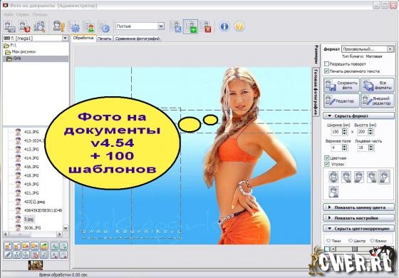 Эта программа предназначена для автоматизации процесса подготовки фотографий на документы. Программа позволяет по фотографии полученной с цифрового фотоаппарата или сканера подготовить фотографию заданного формата на любой документ (например, водительское удостоверение, паспорт, паспорт нового образца, заграничный паспорт, всевозможные удостоверения и др.).