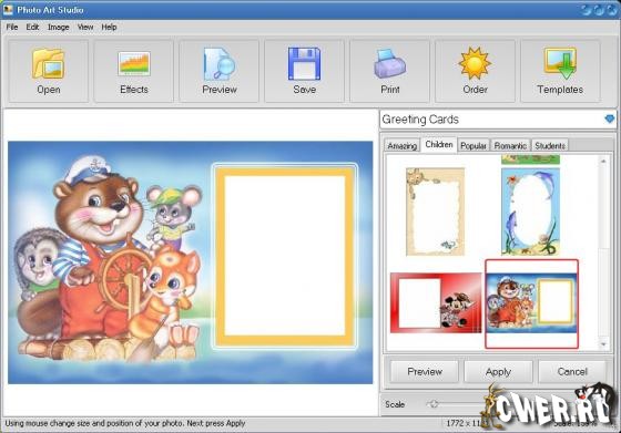Photo Art Studio представляет собой новое программное обеспечение для украшения фотографий. В комплект входит пакет из пяти удобных программ для создания открыток, коллажей, наложения рамок и пакетной обработки фотографий. В течение буквально нескольких секунд, вы сможете создать стильную рамку, создать открытку или коллаж.