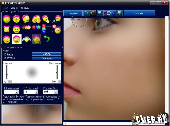 PhotoInstrument - легкий редактор для обработки портретов цифровых фотографий. От Очистителя кожи до придания ему гламурного вида "глянцевых журналов", попутно включая инструменты для: ретуширования, удаления красных глаз, сглаживания морщин, увеличения чёткости, коррекции цвета и многого чего еще, для приданию портрету совершенного вида и желаемой привлекательности.