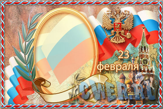 Поздравление С 23 февраля. Формат: PSD, разрешение: 300 dpi, слои отключены.