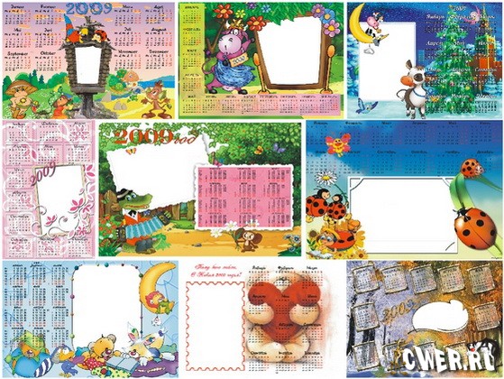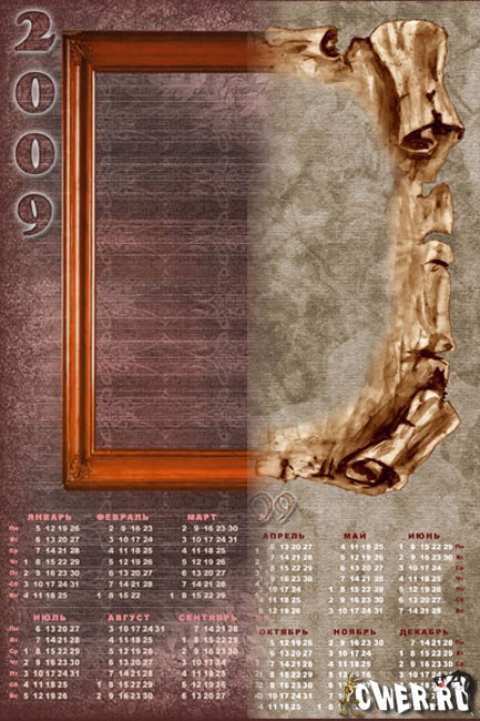 2 календаря на 2009 год в psd формате, слои скрыты, размер 2094x3142 пикс, А4 формат, возможность подстановки своего фото.