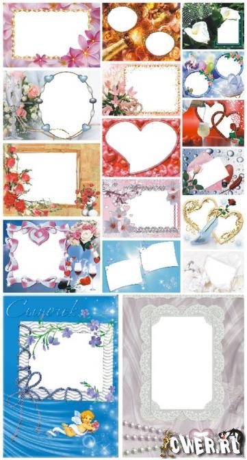 24 шт. свадебных фоторамок в PSD формате, слои отключены, размер рамок от 2000х1400 до 2000х2800 пкс