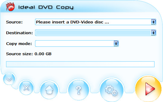 Ideal DVD Copy - простая и высокоскоростная программа для копирования DVD. Эта программа поможет вам скопировать любые DVD-диски, в том числе и защищенные (CSS, Region Code, Sony ARccOS, PuppetLock, UOPs, т.д.). Способна делать точные 1:1 копии DVD, и копировать DVD на жесткий диск и обратно. Кроме того программа может сжать DVD-9 до размеров обычного DVD-5 диска. Также программа поддерживает копирование основного фильма или эпизода, с возможностью удаления ненужных меню, трейлеров, аудио-потоков, субтитров.