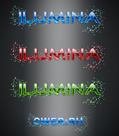 Ilumina - это стили текста для Photoshop с глянцевым 3D эффектом.