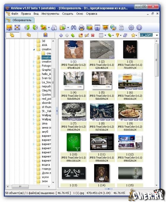 XnView - утилита для просмотра и преобразования графический файлов. Отличный просмотрщик графических файлов, имеет удобный интерфейс и высокую скорость работы, поддерживает более 400 графических форматов, умеет конвертировать 50 форматов между собой. XnView может производить такие операции над графикой, как обрезка, изменение размера, гаммы-контраста-яркости-баланса, печать, допускает применение к изображению разнообразных фильтров, и проделывать над файлами многое другое, причем все эти операции и фильтры (в любом сочетании) можно применять сразу к большому количеству файлов, а преднастройки - сохранять в качестве сценариев и использовать позже.