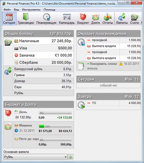 Personal Finances Professional - это простая и быстрая программа для учета Ваших финансов. Интуитивный интерфейс, функции Быстрый расход и авто заполнение помогут Вам вести учет финансов быстро и просто. Всего несколько минут потребуется для учета всех расходов за день. Вы всегда будете знать, куда действительно уходят деньги, и сможете более рационально планировать свой бюджет. Все Ваши финансы как на ладони - от общей картины до мельчайших деталей.