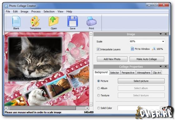 Picture Collage Maker - простая в использовании программа для создания коллажей из ваших фотографий. Простой интерфейс программы и множество шаблонов позволят легко создавать разнообразные фотоколлажи (календари, поздравительные открытки, пригласительные билеты, постеры и т.д.) даже неопытным пользователям. Создание коллажей - это расслабляющее время-провождение, помогающее превращать собранные фотографии в драгоценные воспоминания. Это самый легкий способ создания коллажей с применением вращений, изменения размеров, положений, обрамлений, маскировки, слияния и применением различных эффектов для каждой картинки по-отдельности. Результат может быть сохранен в форматах JPG, BMP, TIFF, GIF, WMF, TGA, PNG или установлен в качестве фонового рисунка для рабочего стола.