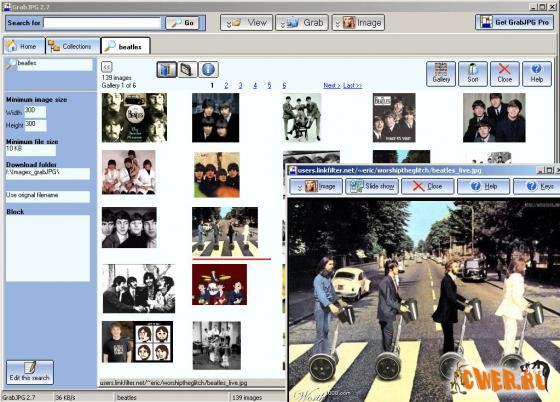Поддерживается предпросмотр картинок, их каталогизация и граббинг ссылок-источников. Можете также похитить все картинки с определенного сайта (Grab a website).