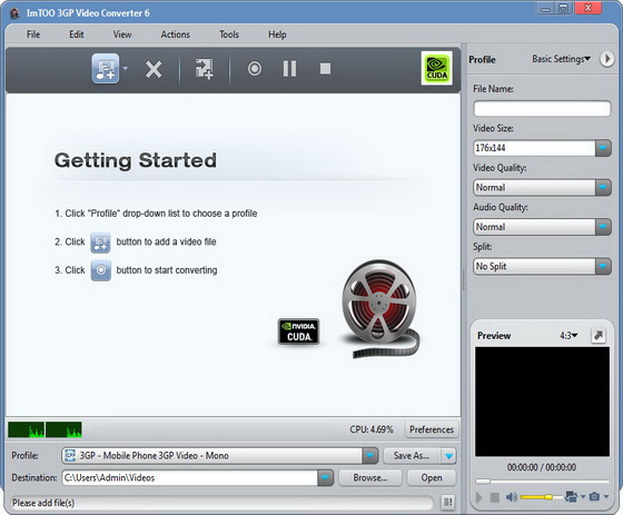 ImTOO 3GP Video Converter - новейшая версия популярнейшего конвертера, работающего с форматом 3GP, применяемом в большинстве сотовых телефонов. Жмет полуторачасовой фильм до 50 МВ! Поддерживается конвертация следующих форматов: AVI, MPEG, 3GP, GIF, WMV, H.264, WMA, WAV, MP3, MP4, M4A, OGG, AAC.